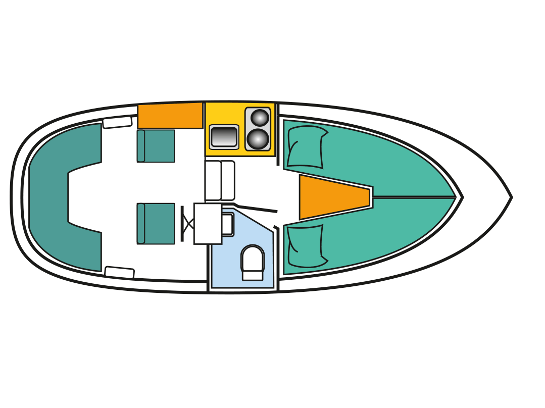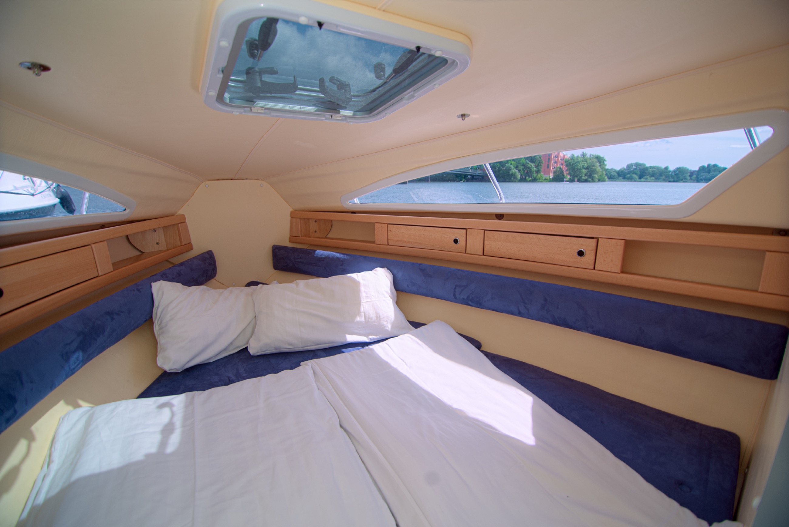 Diese sportliche Yacht aus Berlin Spandau eignet sich ausgezeichnet für Wochenfahrten. Die Nähe zum Tegeler See lädt zu Badetouren ein. Mietet Euch ein schnelles Motorboot mit Übernachtungsmöglichkeit für 2 Personen.