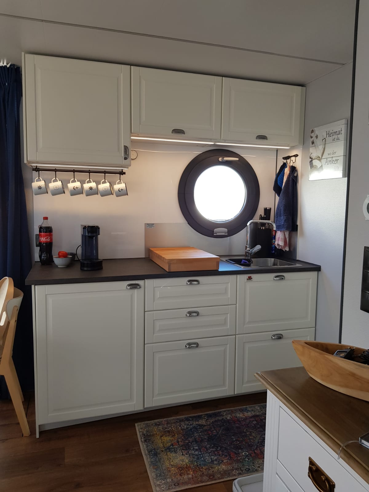 Küchenzeile mit Gaskocher, Spüle & Kühlschrank