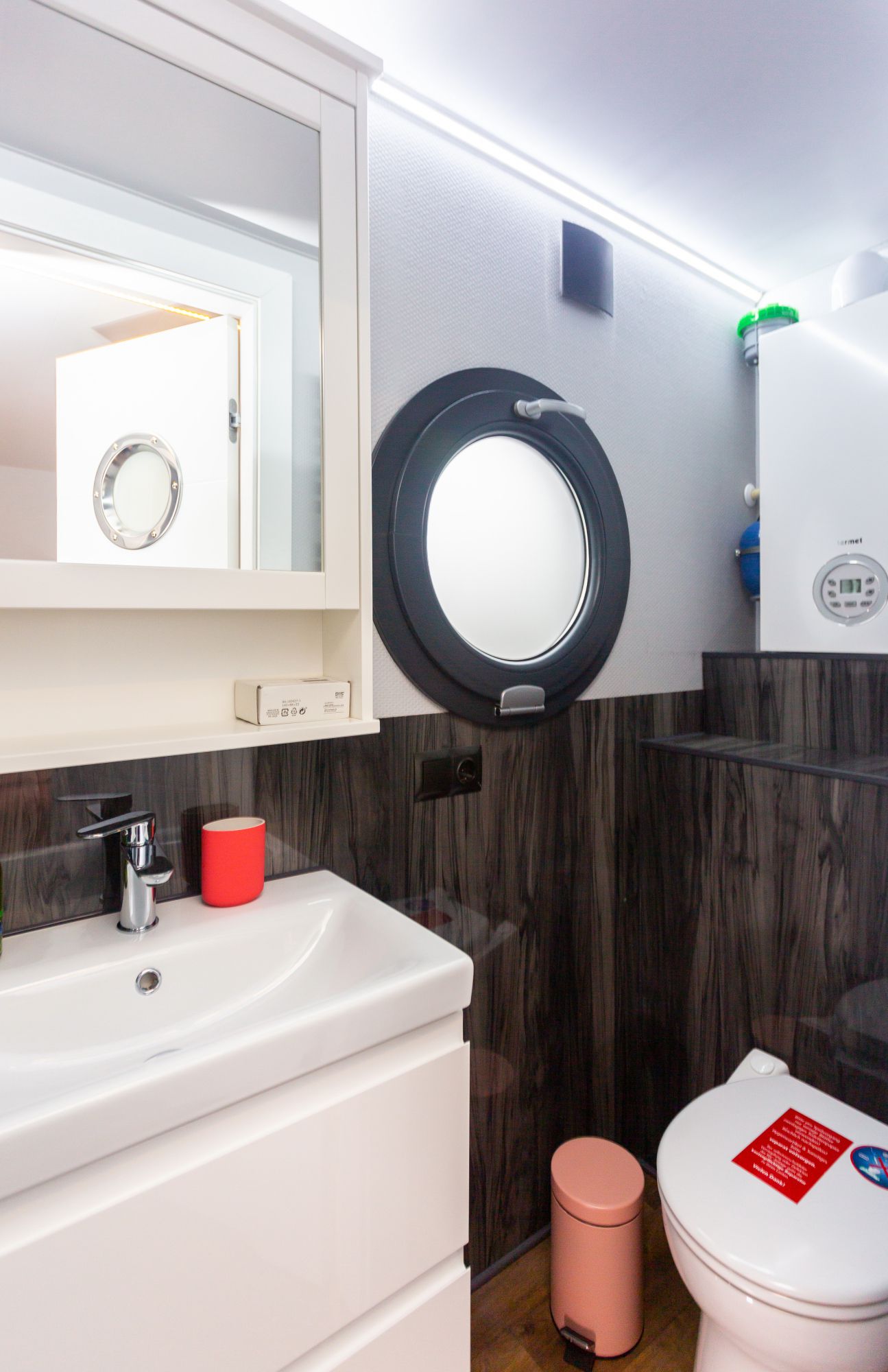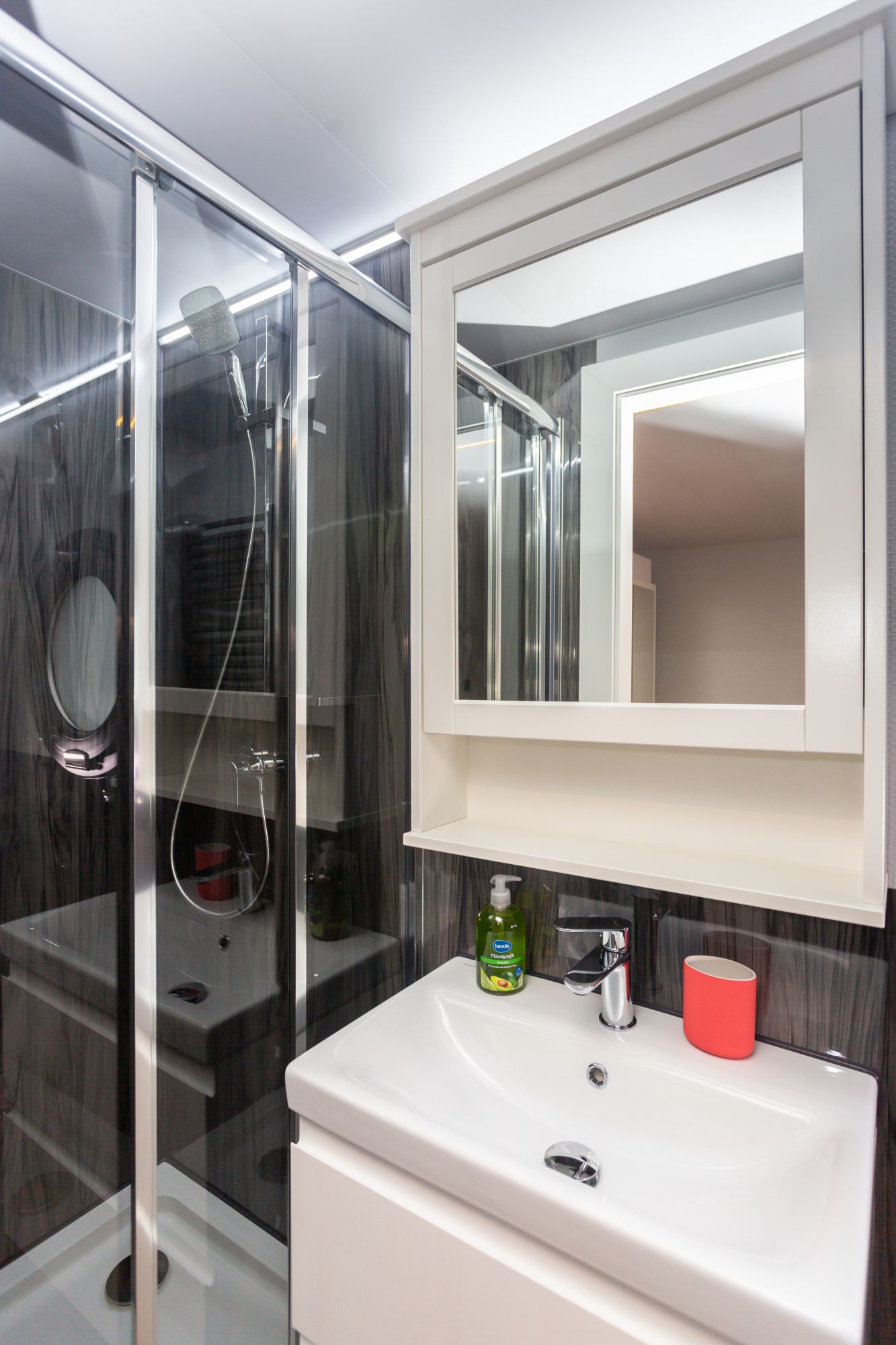Bad mit Dusche, elektr. Toilette und Waschbecken
