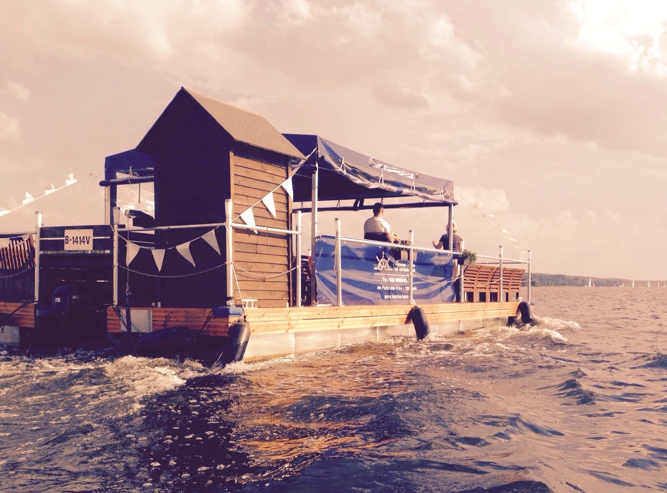 Unser Partyfloß "Locken Dieter" bietet Platz für 30 Personen und ist für Selbstfahrer. Ihr benötigt keinen Führerschein, um einen Tag auf dem Wasser zu verbringen. Das Floß verfügt über einen großen Grill und ein Regenverdeck. Letzteres ermöglicht trockene Floßfahrten bei jedem Wetter. Schnappt Euch bis zu 29 Personen und auf geht's zur Floßtour in Berlin.