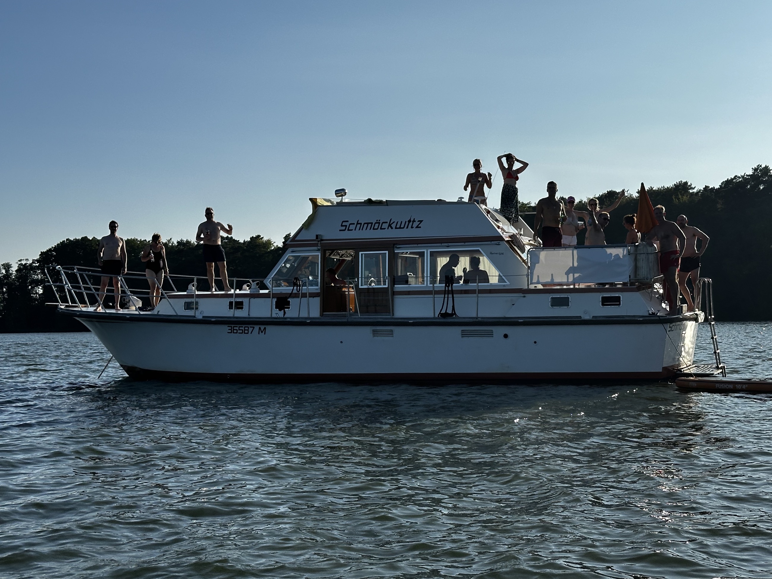 Bucht die Schmöckwitz für Teamevents, Videodrehs, Geburtstage oder Familienfeste. Erlebt Sightseeing in grüner Umgebung oder auf einem City-Törn durch Berlin.